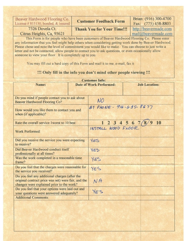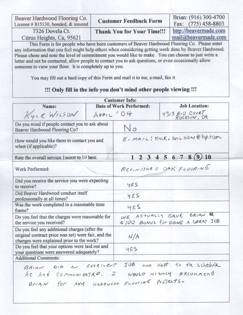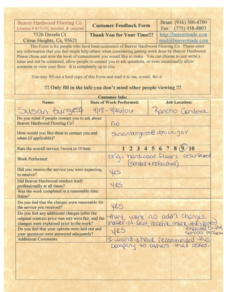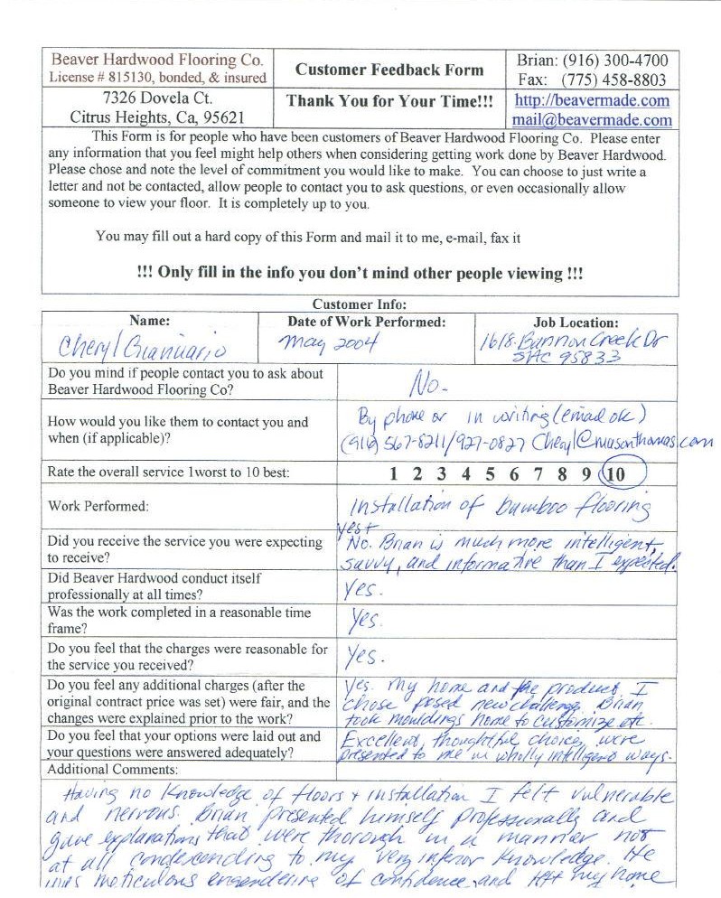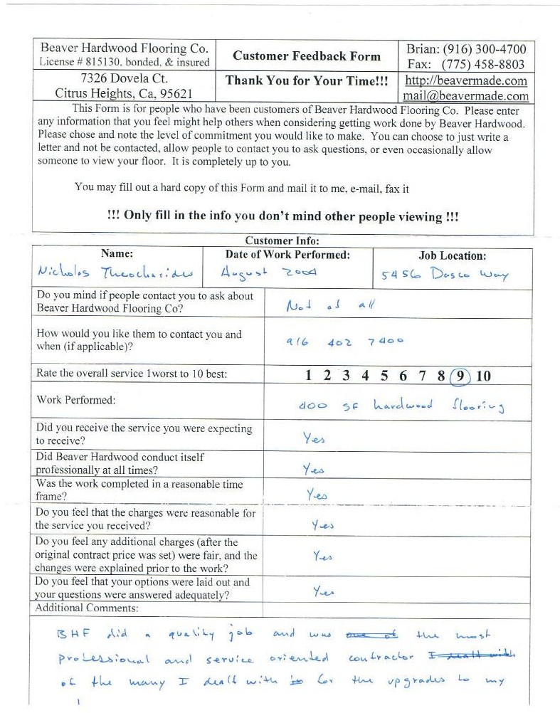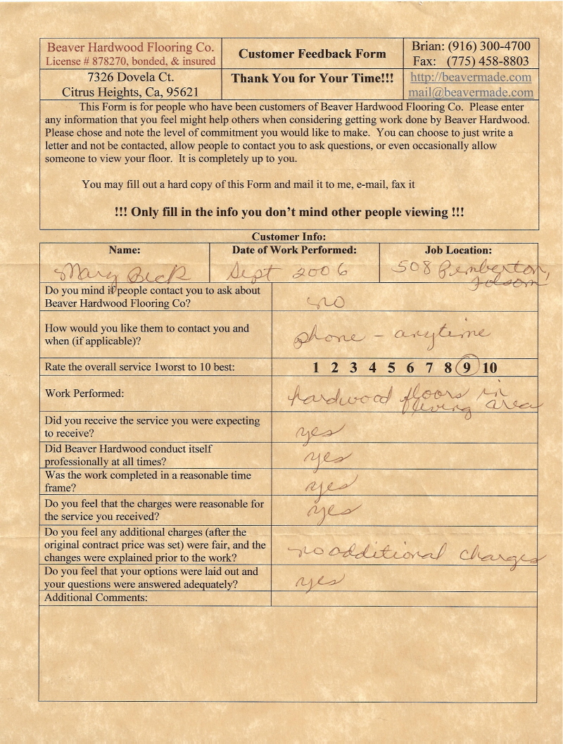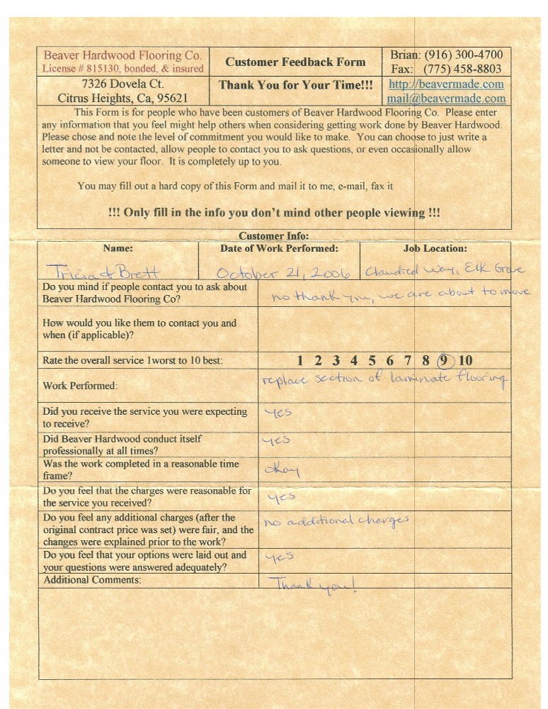 Hardwood flooring company in Sacramento / Placer, California (owned and operated by Brian Beaver);  We travel to surrounding areas. We can answer all of yimageour hardwood flooring questions due to over a decade of experience with all wood and laminate flooring types.  We specialize in on-site sand and finished floors with boarders, inlays,and custom designs, gym and basketball floors, and finishing. We have a California based flooring license (c15).  References are available and all estimates are free!  Call (916)300-4700 or email us (please put 'flooring' in the subject line) for a free estimate.