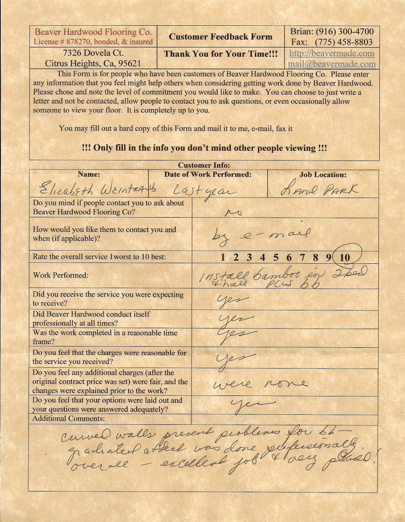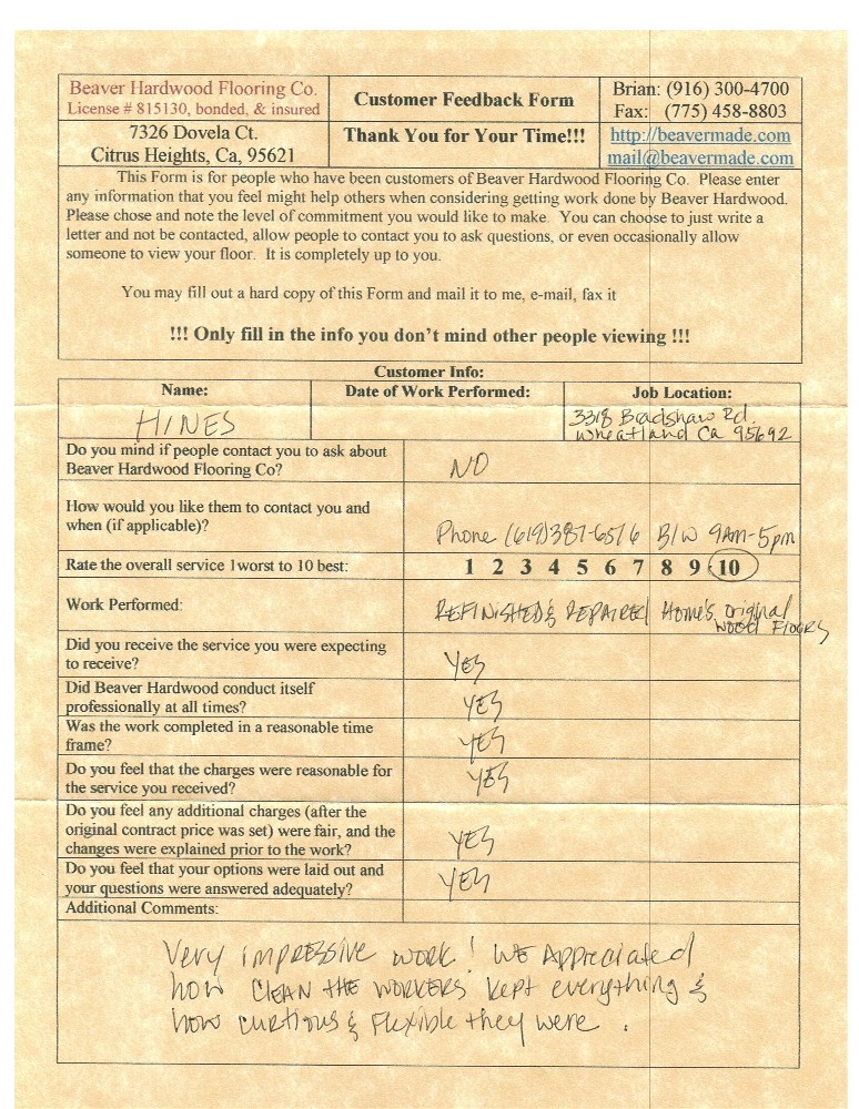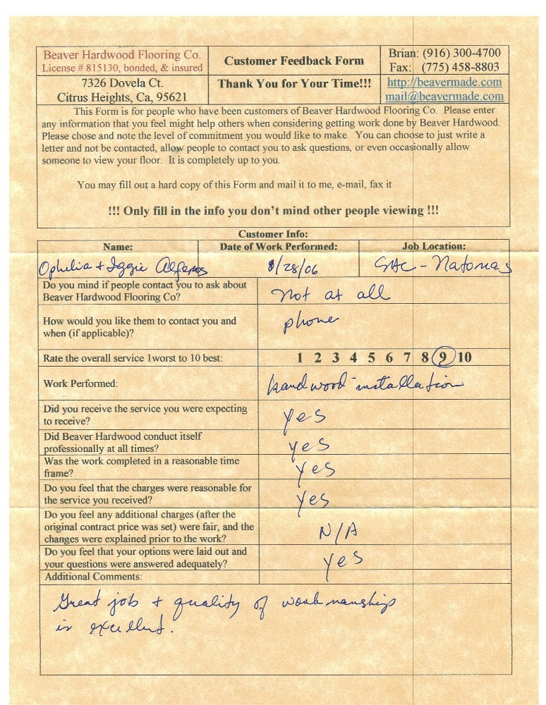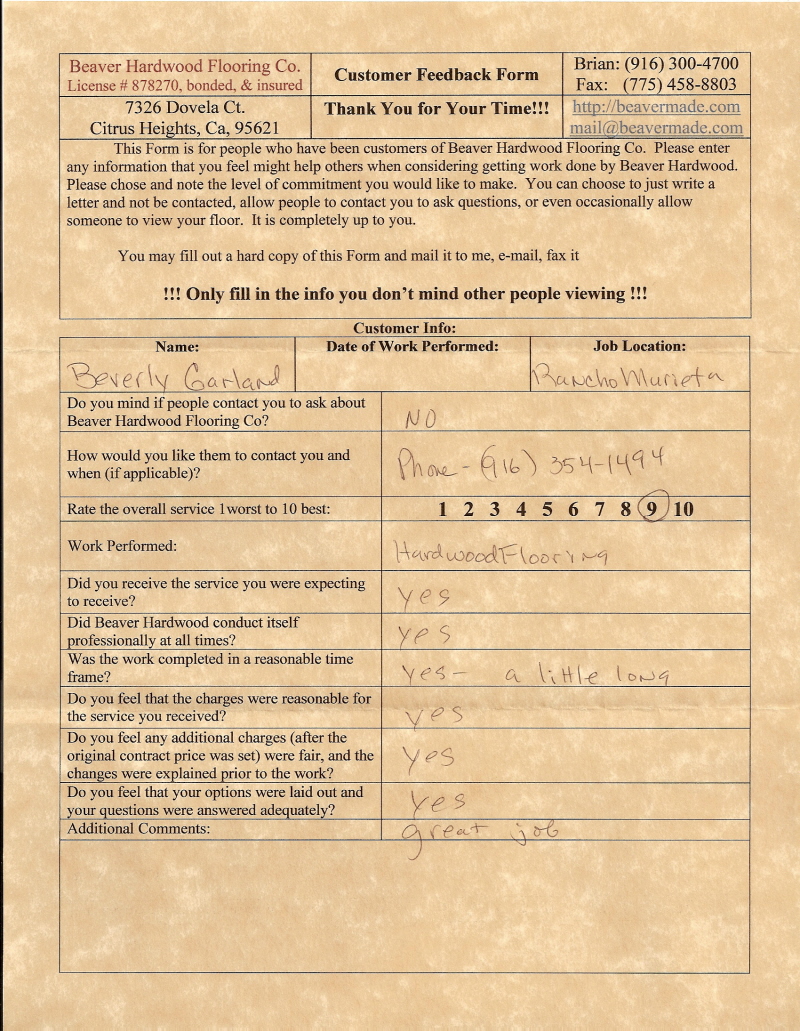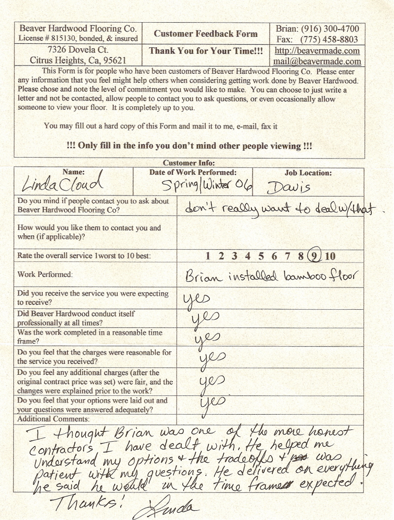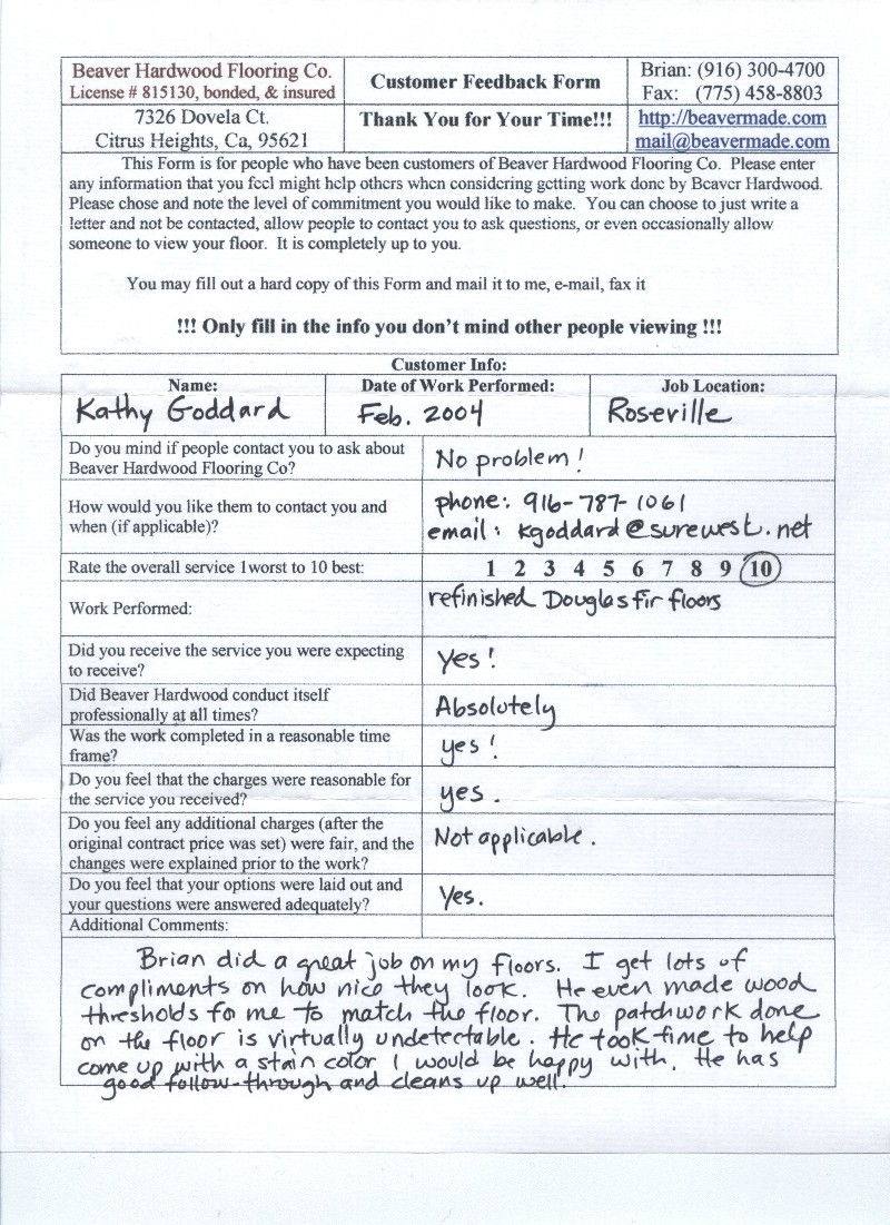 Hardwood flooring company in Sacramento / Placer, California (owned and operated by Brian Beaver);  We travel to surrounding areas. We can answer all of yimageour hardwood flooring questions due to over a decade of experience with all wood and laminate flooring types.  We specialize in on-site sand and finished floors with boarders, inlays,and custom designs, gym and basketball floors, and finishing. We have a California based flooring license (c15).  References are available and all estimates are free!  Call (916)300-4700 or email us (please put 'flooring' in the subject line) for a free estimate.