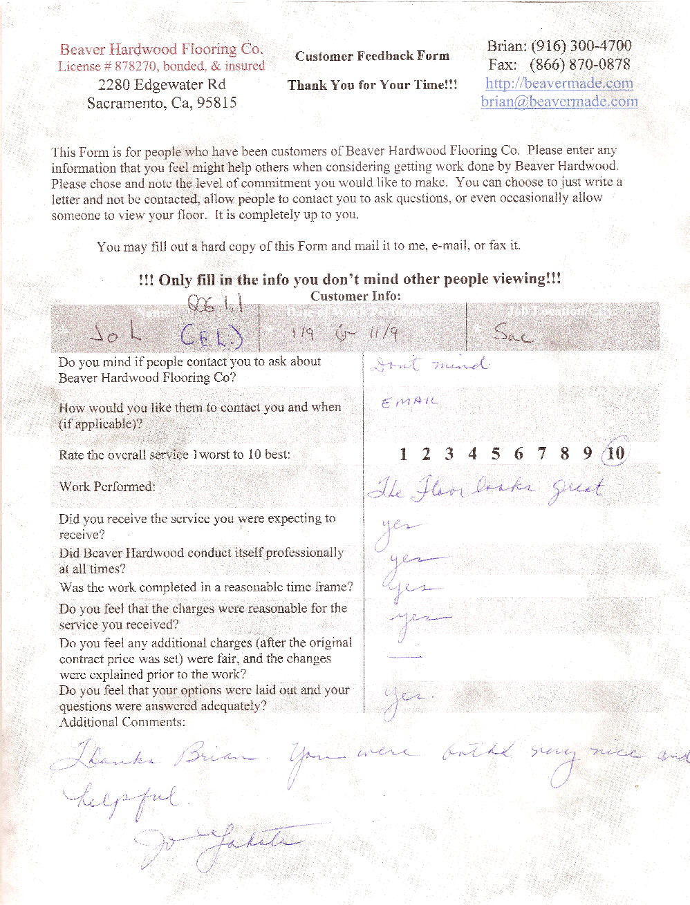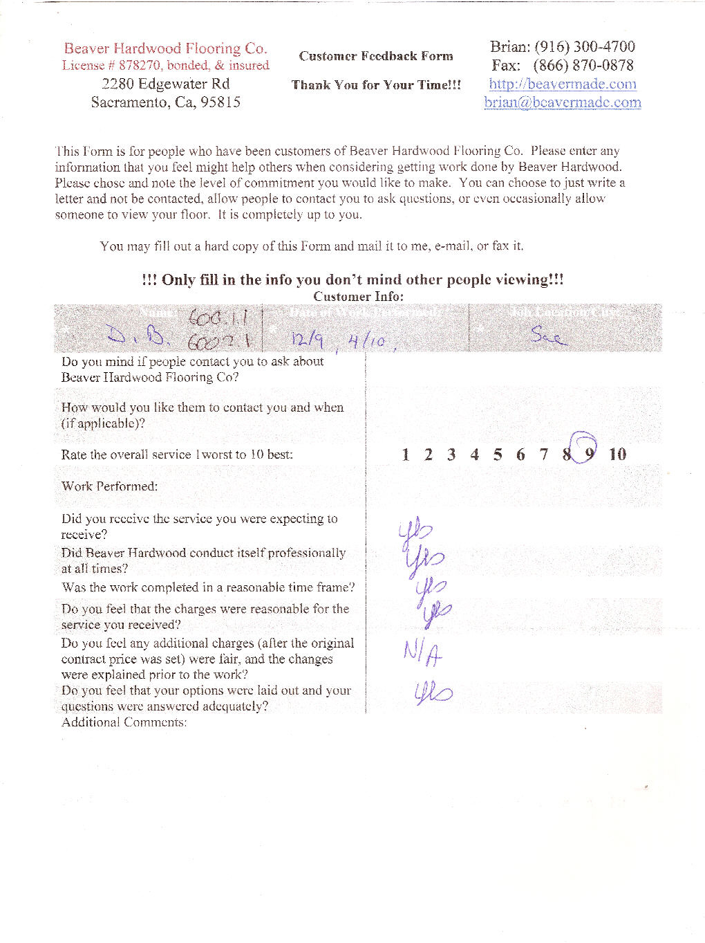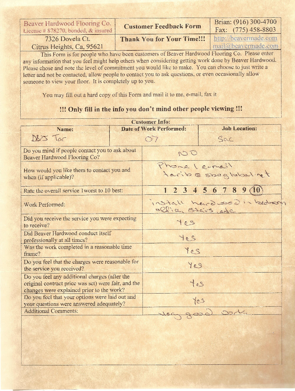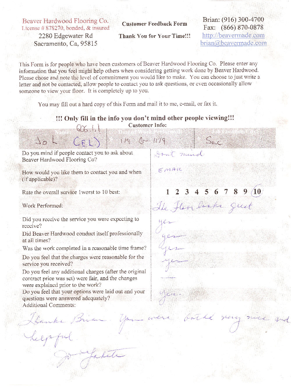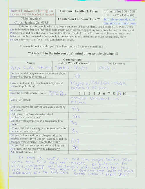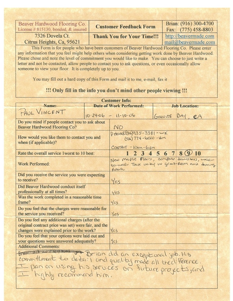 Hardwood flooring company in Sacramento / Placer, California (owned and operated by Brian Beaver);  We travel to surrounding areas. We can answer all of yimageour hardwood flooring questions due to over a decade of experience with all wood and laminate flooring types.  We specialize in on-site sand and finished floors with boarders, inlays,and custom designs, gym and basketball floors, and finishing. We have a California based flooring license (c15).  References are available and all estimates are free!  Call (916)300-4700 or email us (please put 'flooring' in the subject line) for a free estimate.